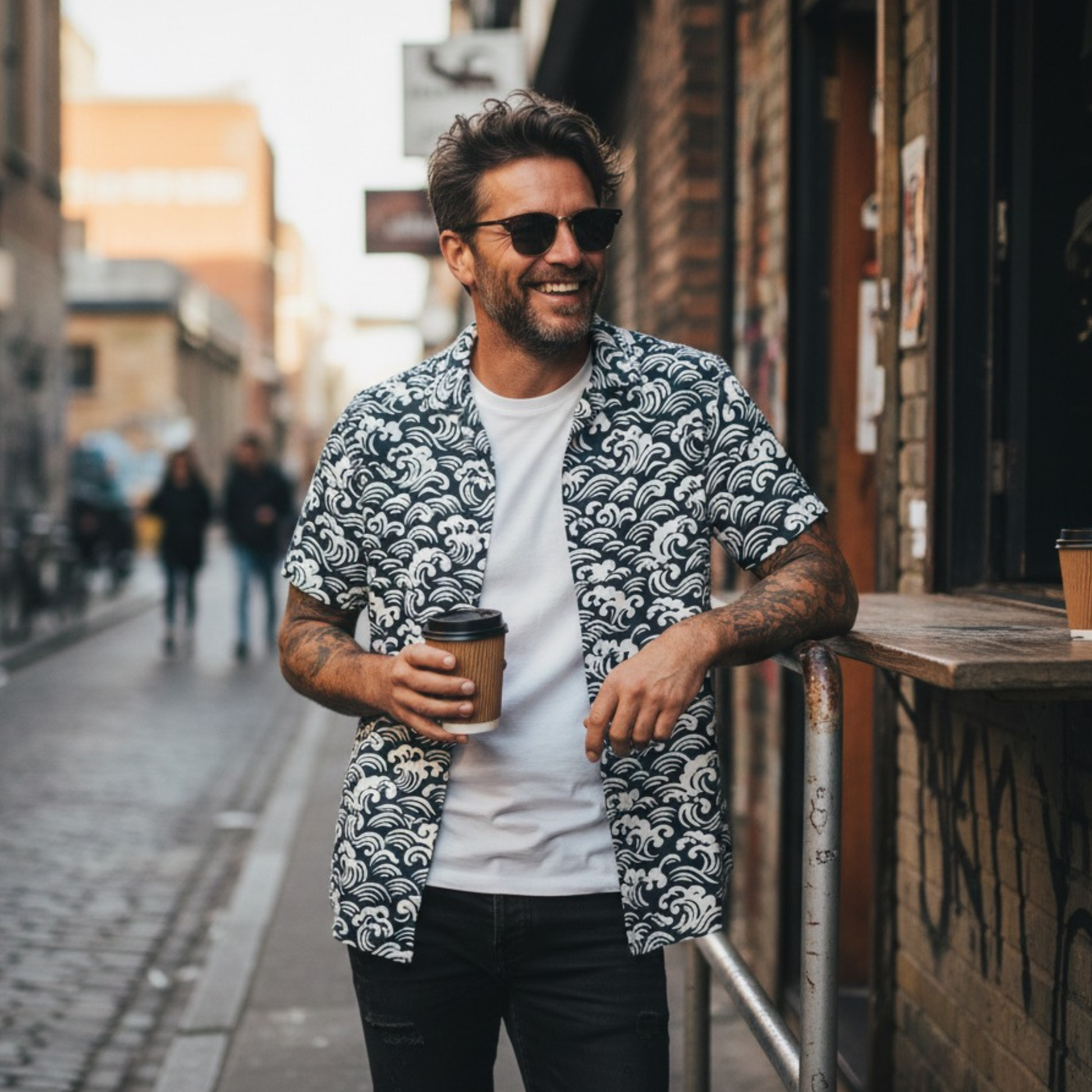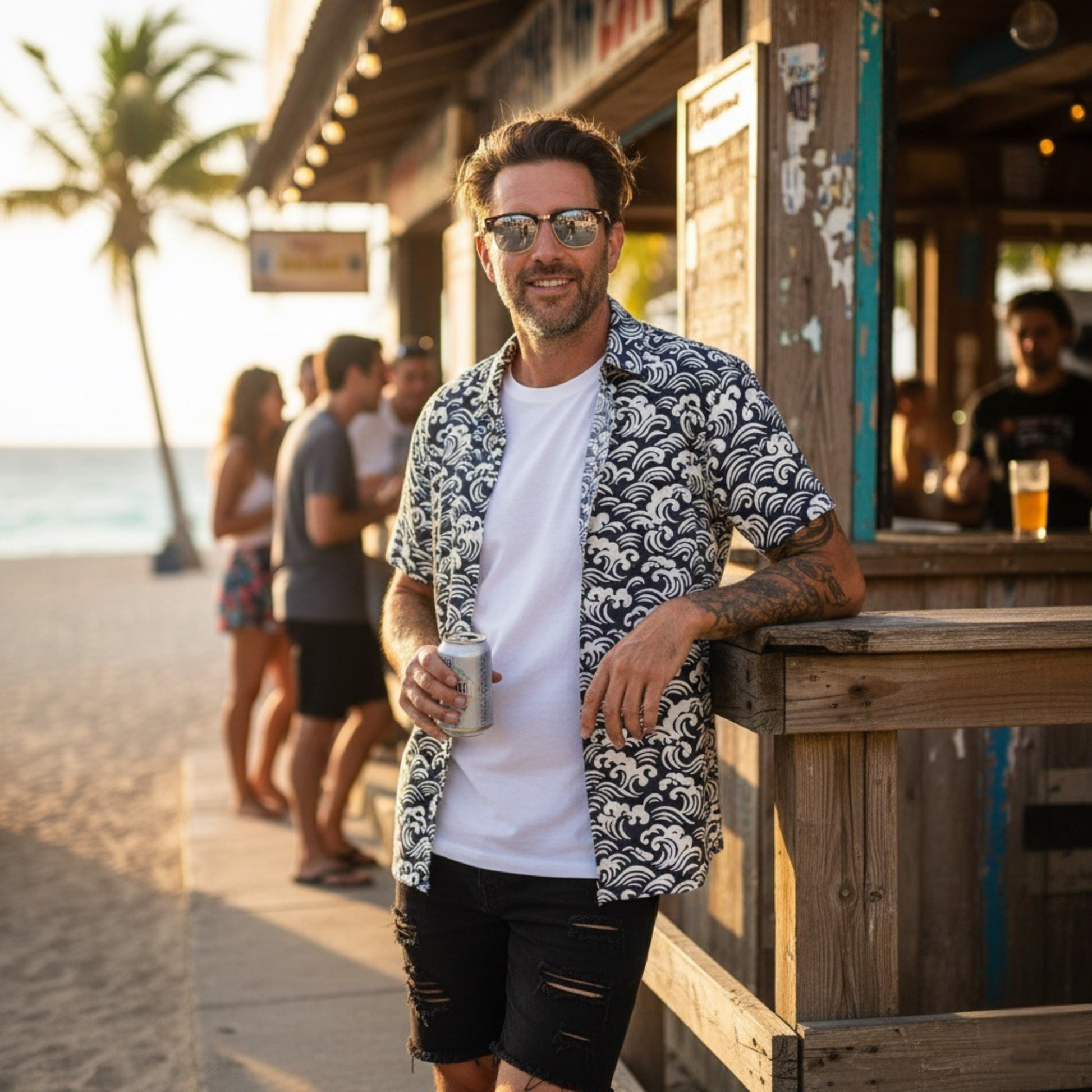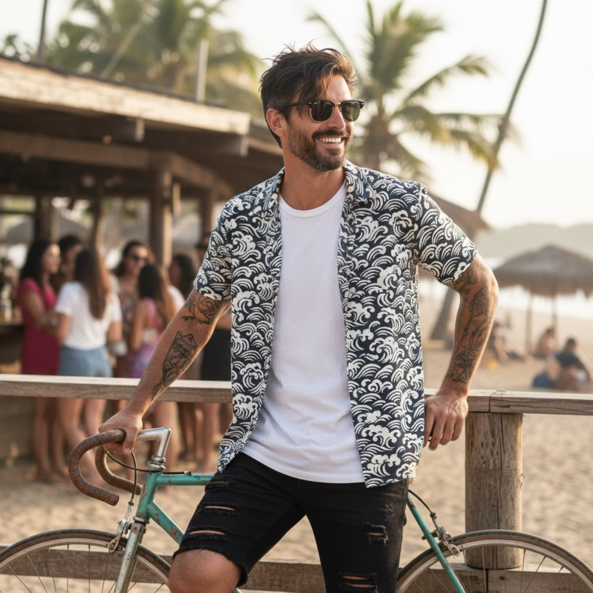 At first glance, it’s a serene and stylish wave pattern — something you’d wear to a beach wedding or a holiday with in-laws. But somewhere in the dark curves of the swell… things get anatomical. Yes, those waves are dicks. Tastefully arranged, mind you.